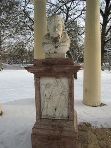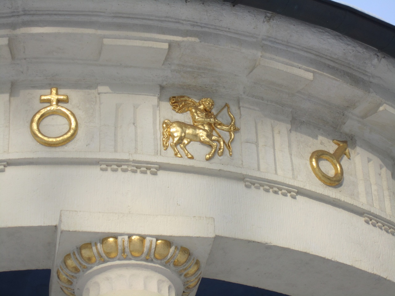 The memorial has a bust of Kepler, with his name misspelled- I’m not at all sure why the bust has two Ps instead of just the one. There is a piece on the top which I think is supposed to represent the laws of planetary motion, and the outer edge of the canopy is ringed with astrological symbols.
