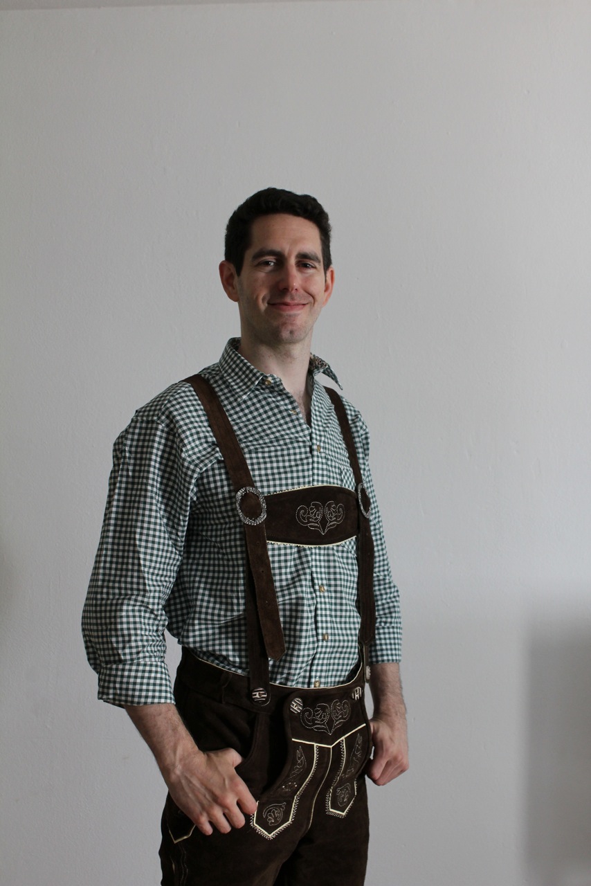 Since I’m going to be living in Bavaria for several years, I thought it would be a good idea to have a set of these for festivals and special events. I’m not really certain how often I’ll wear my lederhosen, but I wanted to do this right. I got one shirt in forest green, and another with royal blue checks, and the rest of the outfit looks like this:
