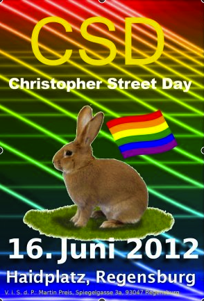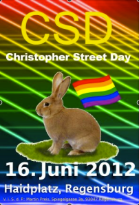 This is a huge event in Berlin and Cologne, but the day is celebrated in major cities all over the country. Normally, there’s a parade but Regensburg didn’t have one this year. I had no idea that CSD was happening at all, or I probably would have tried to get a good seat for the live music. I’ll need to make a note on my calendar for next year- I love a good parade.