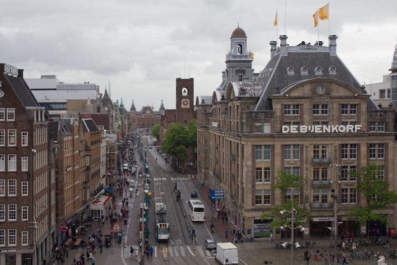 There is a Madame Tussaud’s in Amsterdam, right on the corner of Damrak and Damstraat on Dam Square.  This is the view from a window in the Tussaud’s looking up Damrak towards Amsterdam Centraal.