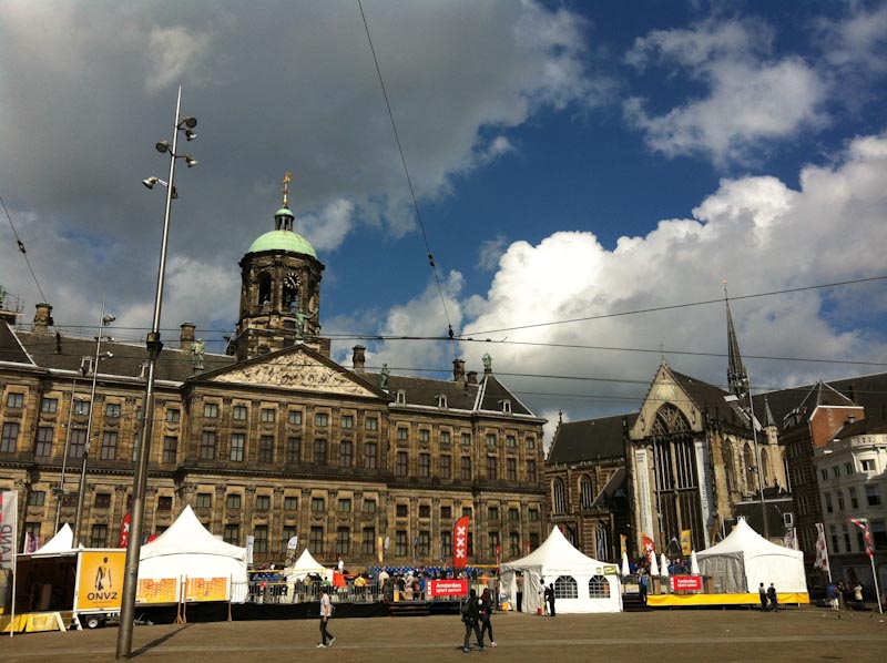 This is Dam Square.  The building on the left with the copper-green dome is the Royal Palace, and the building on the right is the Nieuwe Kerk, a 15th century church that is used for royal coronations.  The tents in front?  They put out a bunch of sand and there was some sort of beach volleyball competition.  I’m not really sure what the event was, but it seemed wildly out of place next to the ancient buildings.