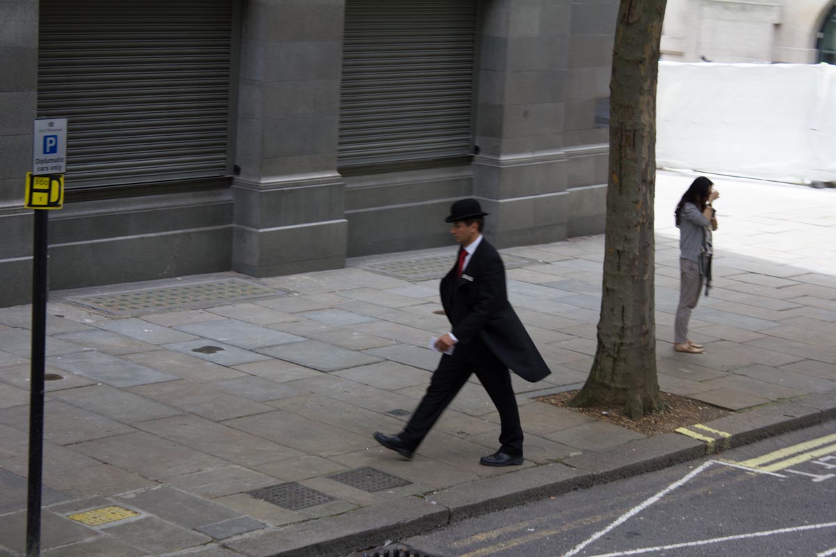 I started out my time in London by using one of those hop-on-hop-off tours on a double decker bus. This is a great way to get an overview of a new city, and the tour guides are usually pretty interesting. Right away, I saw London being, well, London. Bowler hat. Tails. If this guy had a monocle and a walking staff, my day would have been complete.