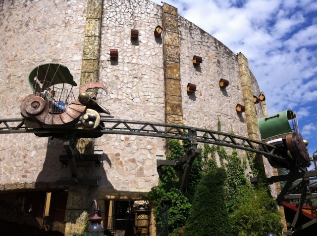 There’s a 3D animated shooting ride called Maus Au Chocolat, in which you shoot balls of chocolate at animated mice to score points.  You compete against your seatmate for highest total- it’s pretty fun.