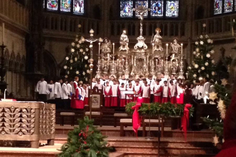The Domspatzen sing both regular mass services as well as concerts around Germany.  Jenny also was curious to see them sing, so we went to the Holy Mass services on the Sunday before Christmas.   Advantage:  It’s free, at least until the collection plate comes by.  Disadvantage:  It’s a Roman Catholic Holy Mass, so there’s a ton of ritual, chanting, kneeling, and the swinging of incense which is catnip for migraines, as I discovered.  I’ve been to Catholic mass services before, and my ability to follow the ritual was about the same in German as it is in English.  Still, it’s a good way to see the Domspatzen in their native habitat, and you get a sense of what they sound like without going out of town to attend a full concert.