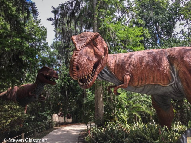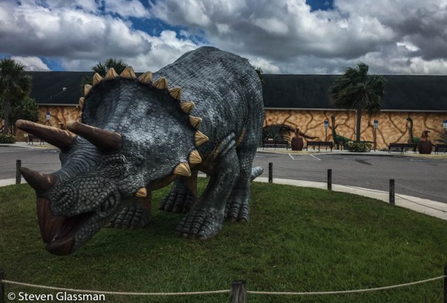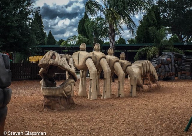 This wonderful and adorable little attraction is just off exit 17 of I-4, a little bit east of Tampa. I thought it was one of a kind, but I have learned that there are three of these parks, all owned and operated by the same family. The park is filled with life sized dino sculptures by a man named Christer Svensson. (I keep wanting to call him Christopher, but the oph is truly silent.)