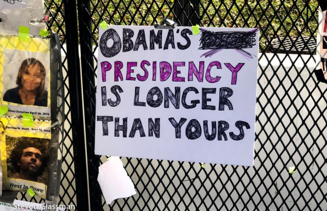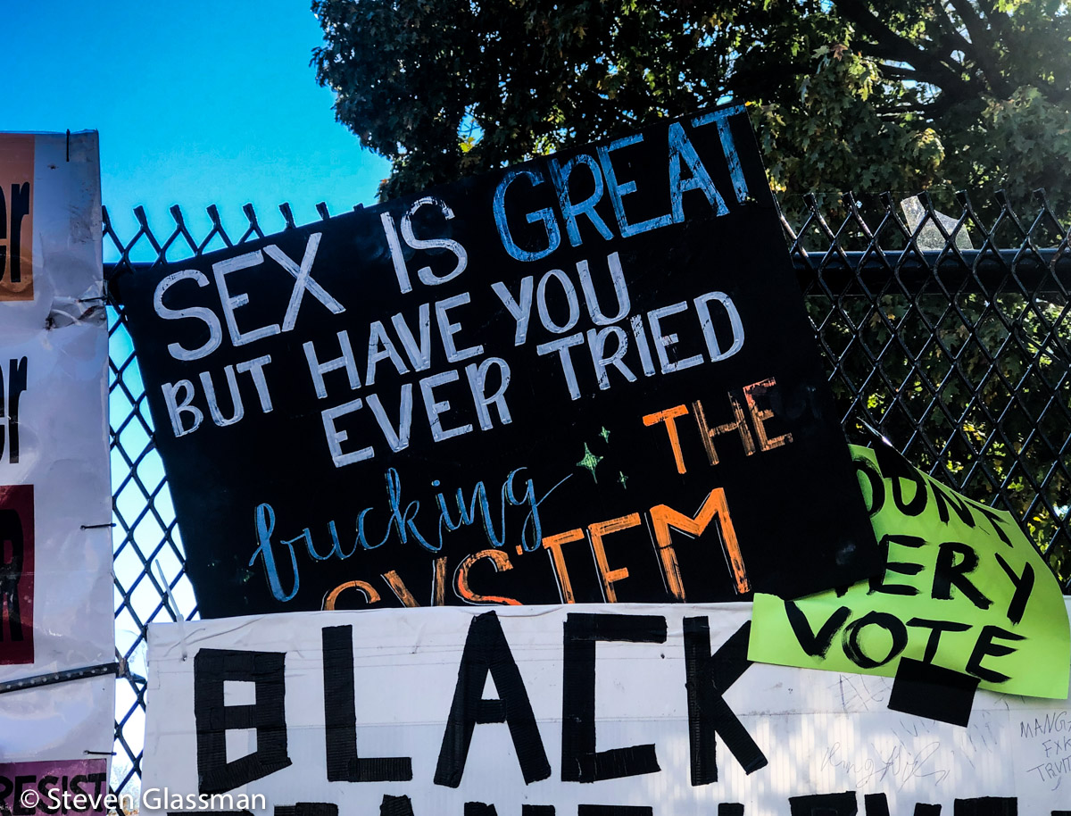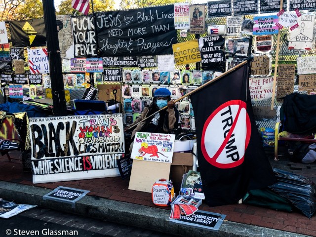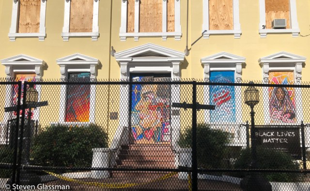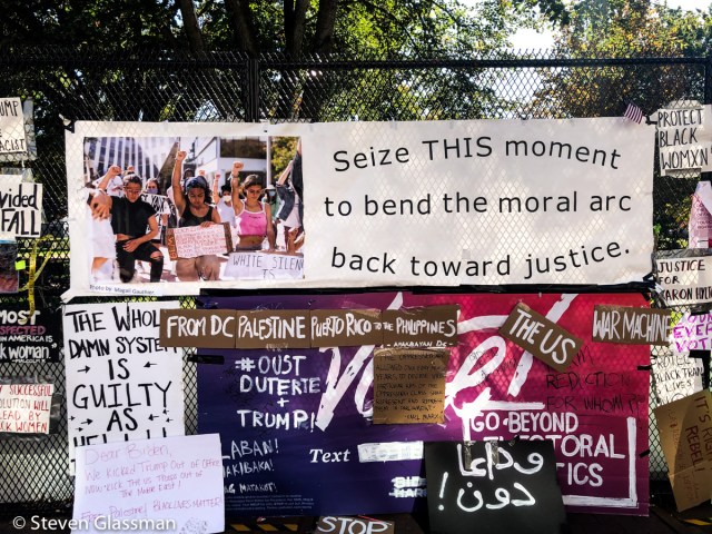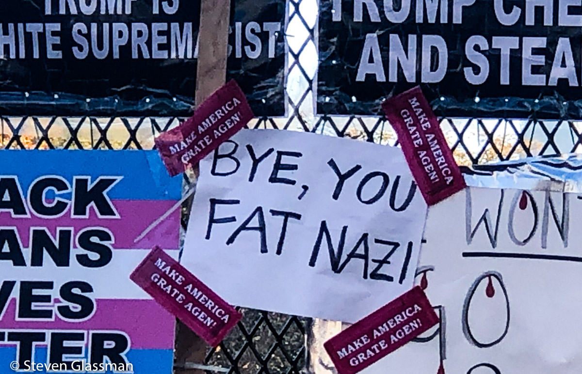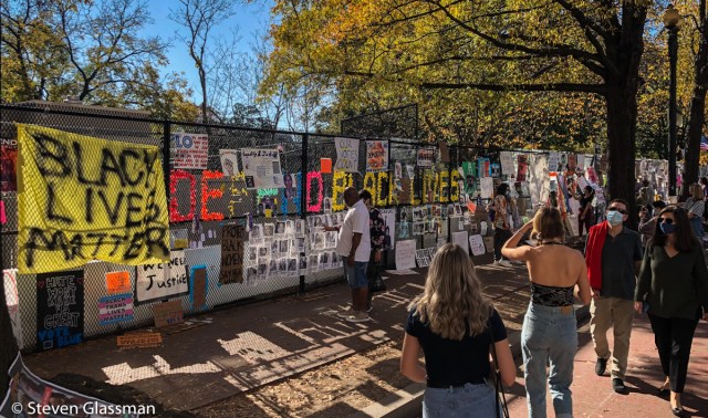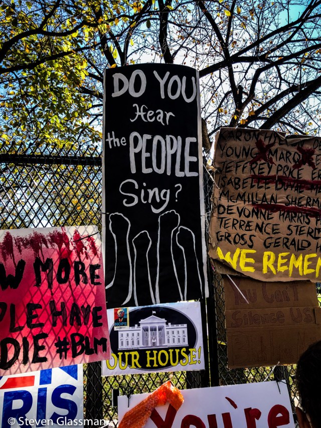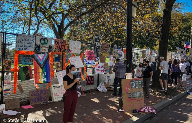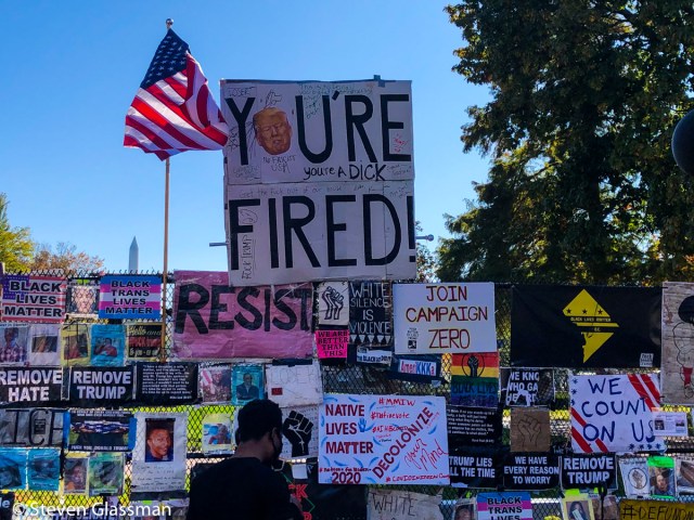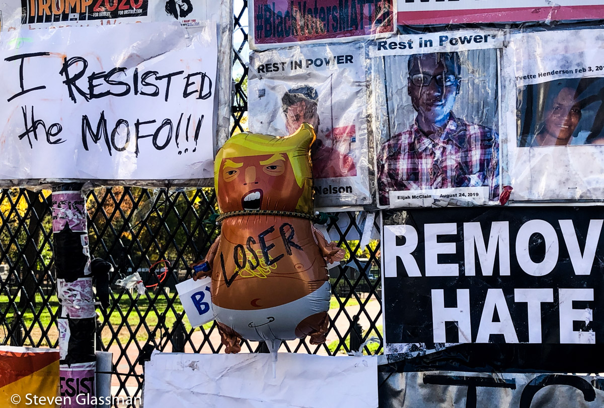 Speaking of that chain link fence, it was just absolutely covered in protest signs, posters, and artwork for most of the distance between 15th Street and 17th Street, anywhere it touched Lafayette Square.