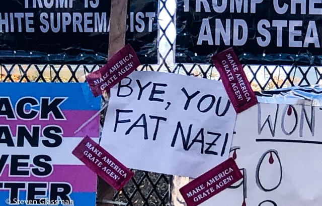 These are the protest signs of an angry, stressed out, massively divided country finally allowing itself the chance to have a small sigh of relief. I didn’t see a single pro-Trump thing all day until I got back home and looked at Twitter again.