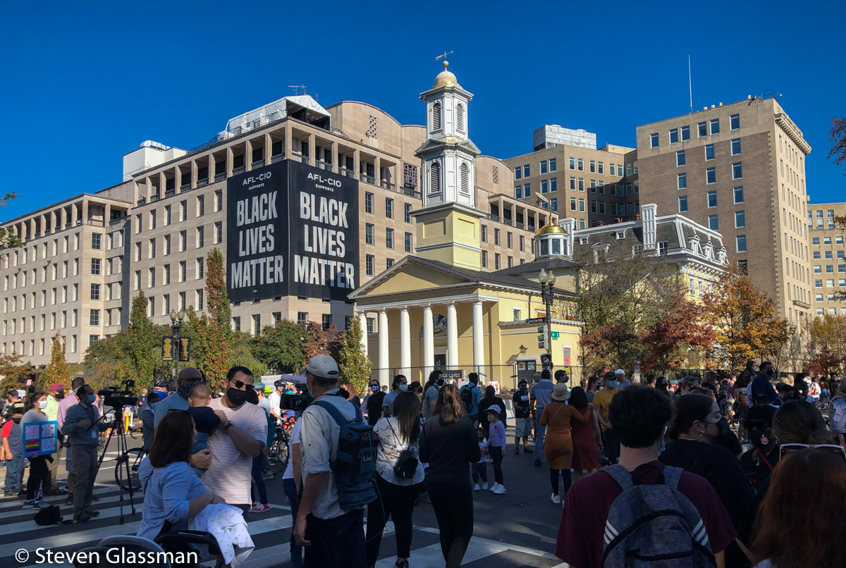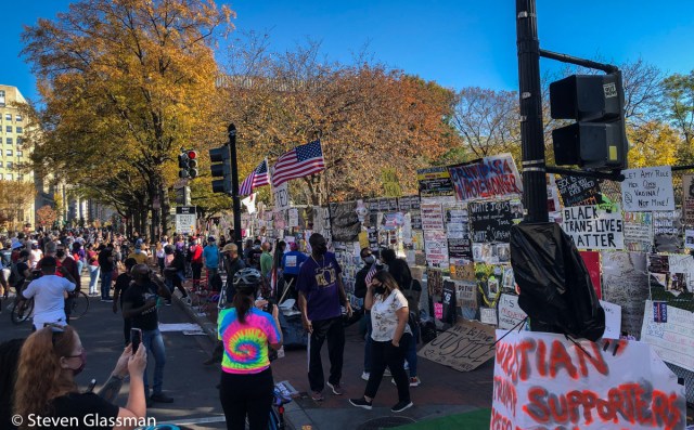 On Saturday, when the news outlets called the Presidential race for Joe Biden and Kamala Harris, thousands of people flooded into downtown DC. They came in by car and by metro, gathering in celebration at Black Lives Matters Plaza.