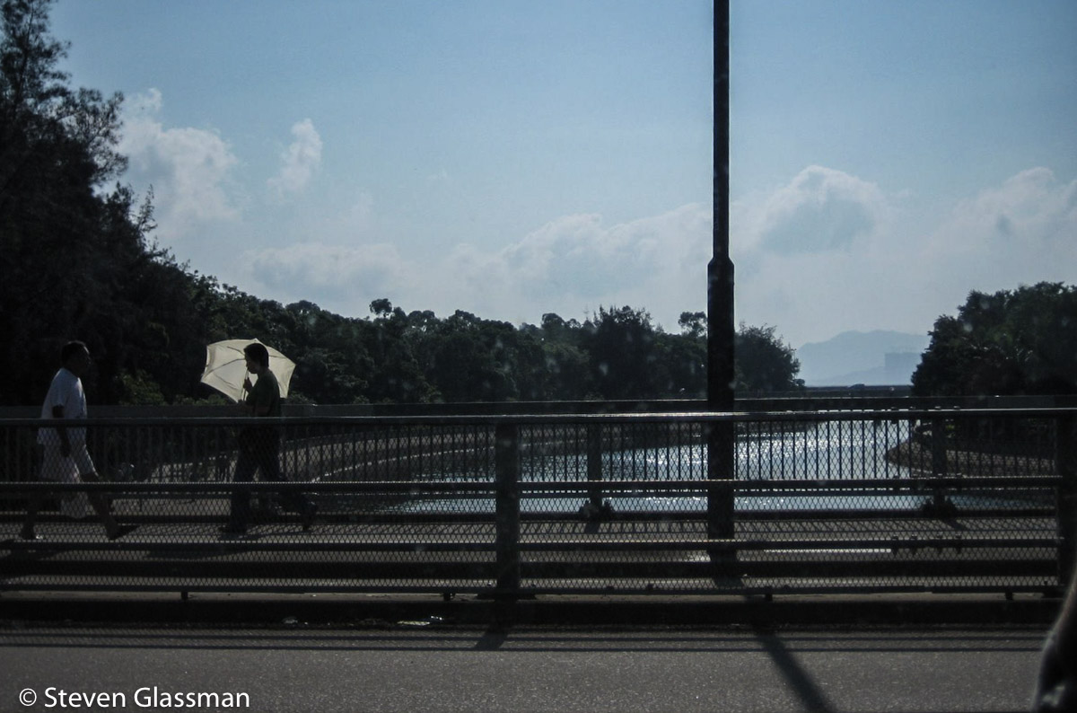 Three more pictures, and then I’ll wrap this post up. The first is just a random guy walking across the bridge as seen from our taxi on that first work-day. I saw a lot of people carrying parasols to protect them from the sun- this is a very good thing It was toasty-hot the whole time we were there.