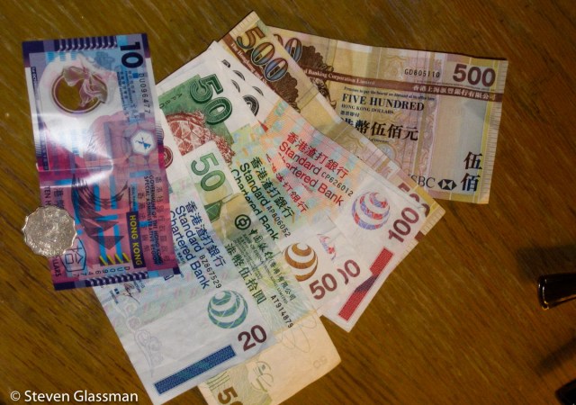 Once checked in, I needed to change some US dollars into Hong Kong dollars. There are three different banks authorized to print and distribute their own designs of Hong Kong dollars, alongside the Hong Kong government. This means that my bills did not always match each other in appearance- for someone used to the uniformly green all-the-same-size bills the United States uses, this was eye-opening. I did like the vibrant colors on that tenner though.
