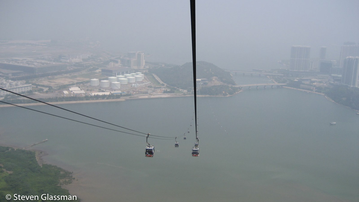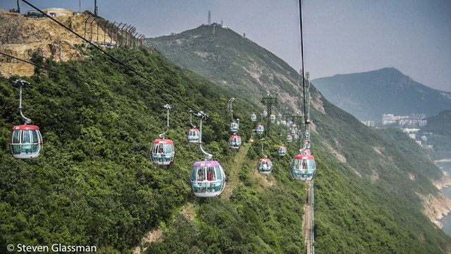 The cable cars go past the Hong Kong International Airport first. The old Hong Kong airport had a single runway and planes basically flew directly into the busy Kowloon downtown- this must have been terrifying.