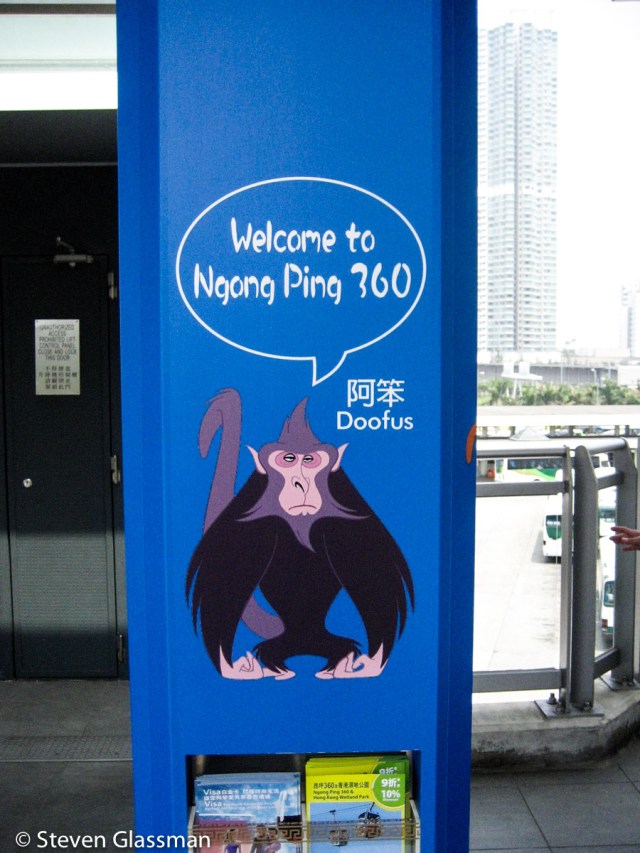 After you leave the MTR, you walk across a courtyard to the Ngong Ping 360, which is a cable car system. I quite like their mascot.