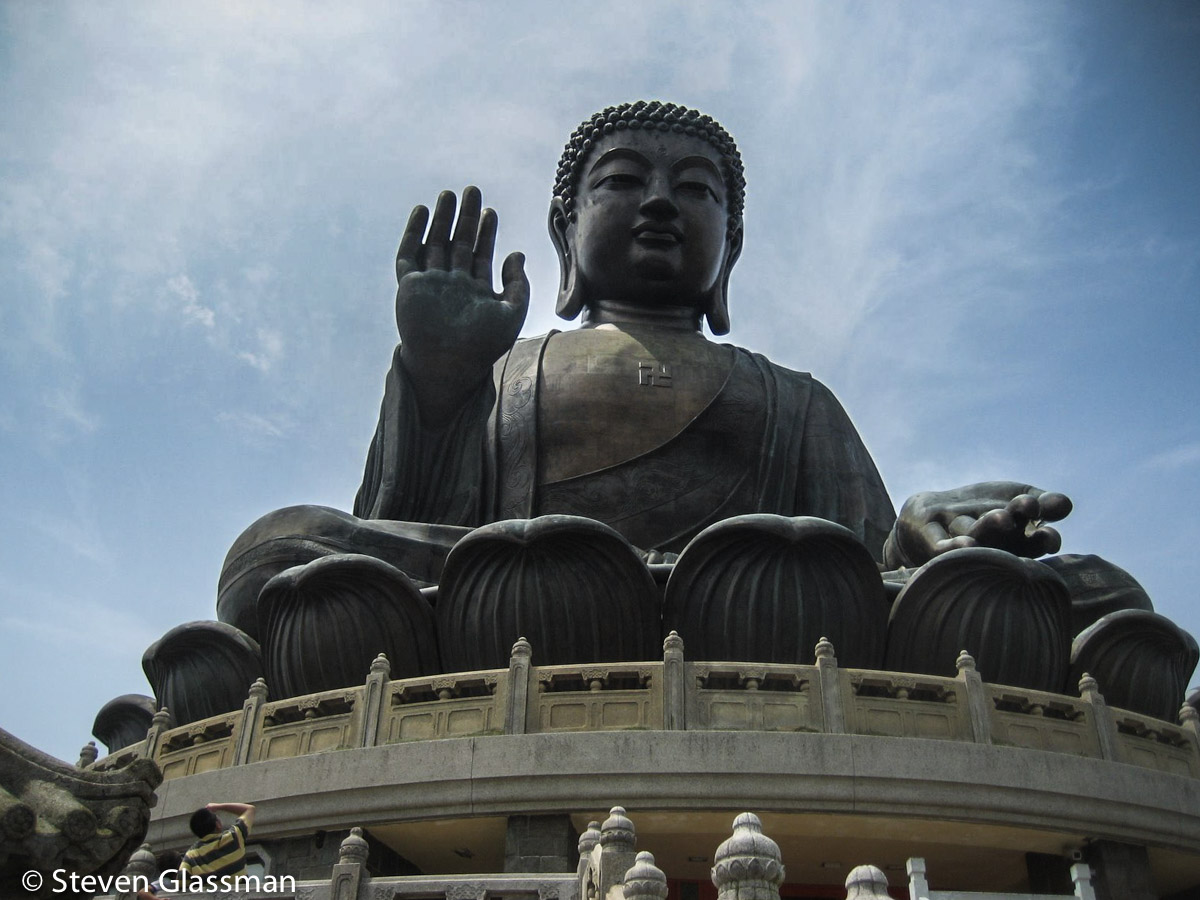 Tian Tan is the world’s largest outdoor seated Buddha, though not the largest Buddha by a big margin. This bronze big boy is 85 feet tall from his base, on a lotus atop another platform.