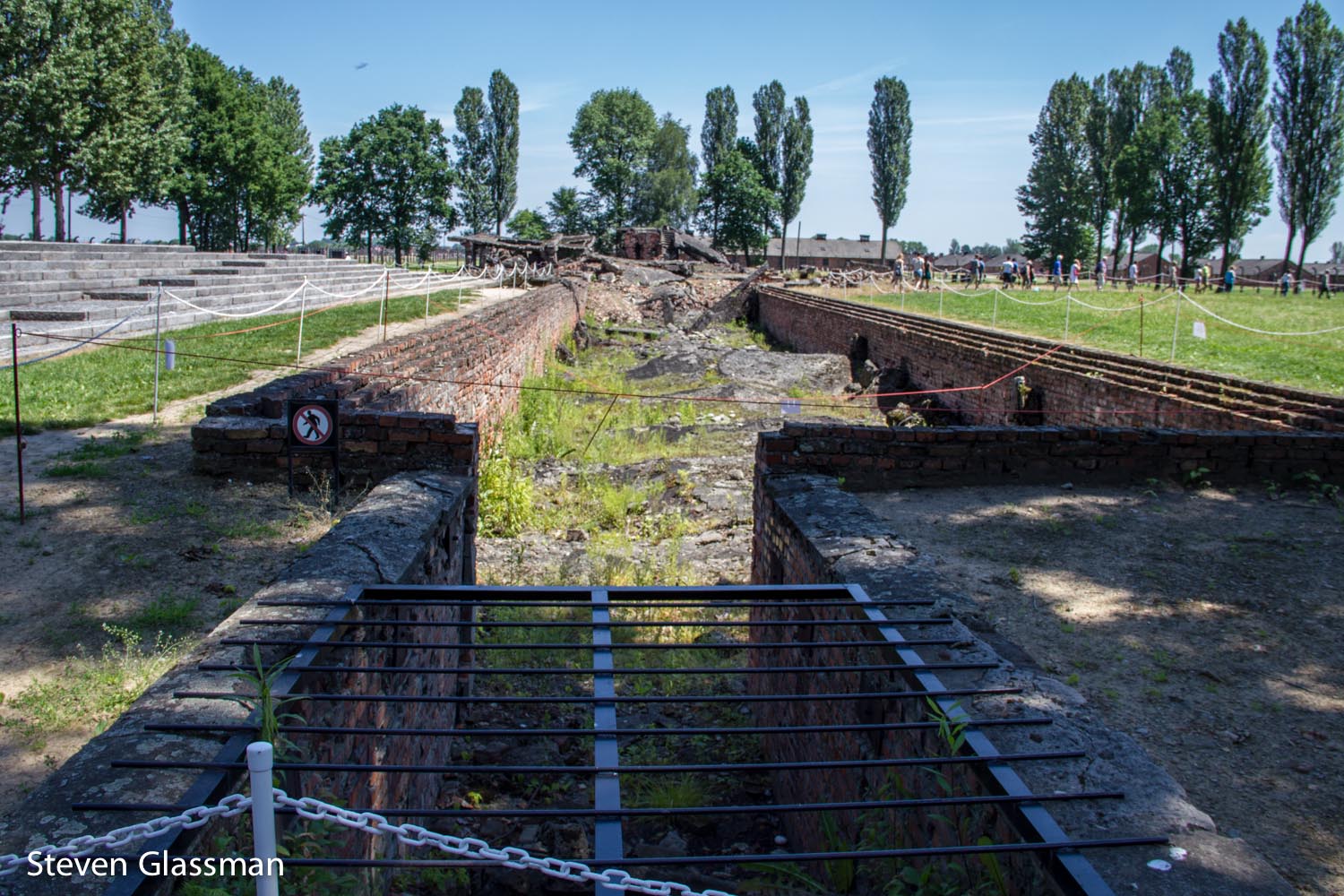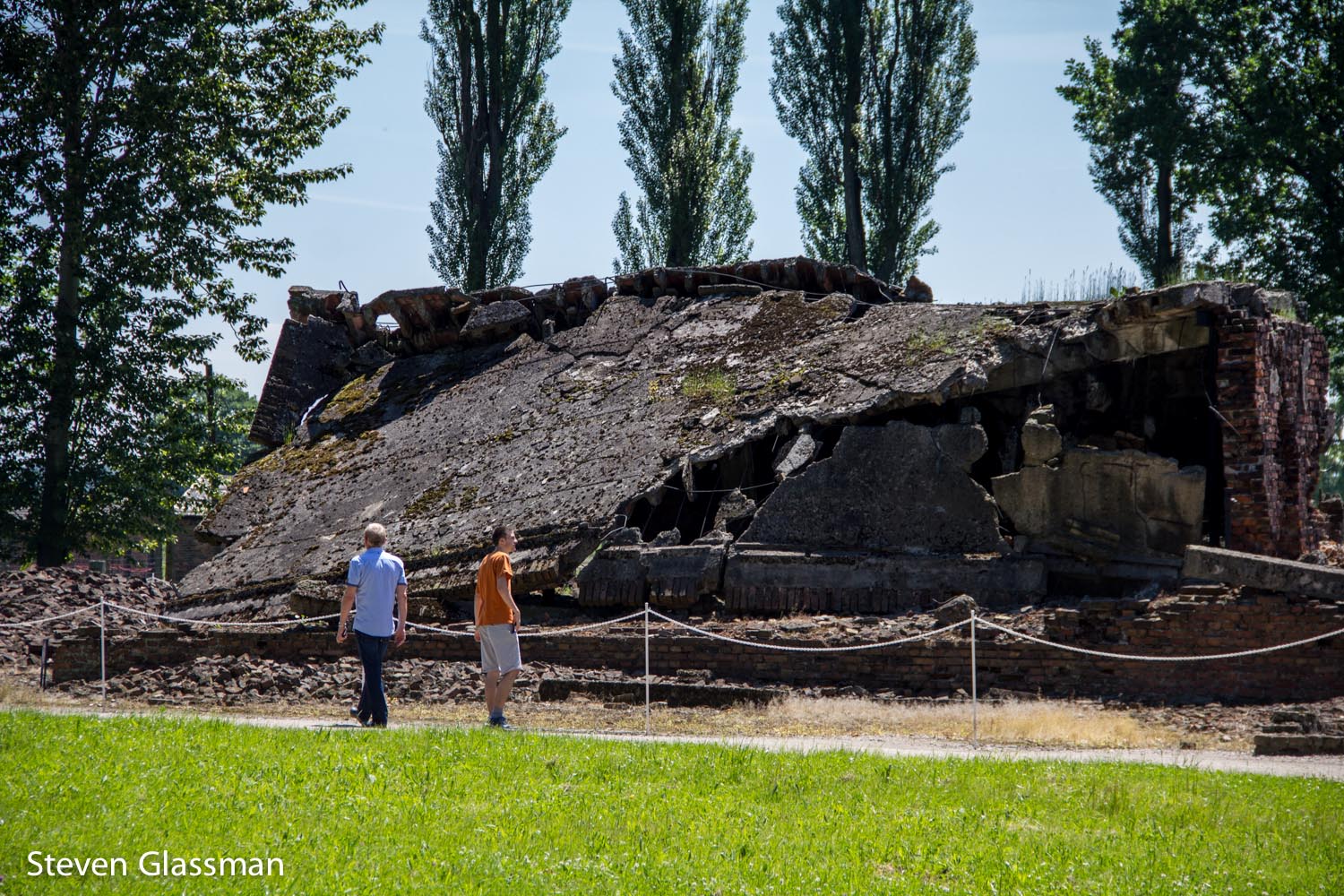 This is what remains of crematorium 2.  When Soviet forces marching through Poland were almost to the camp, the Nazi soldiers set about bombing their gas chambers and crematoriums in an attempt to hide what was being done.
