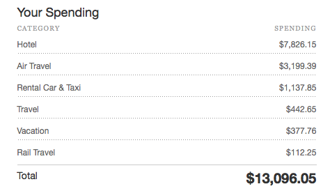This means that in 2013 alone, and only 2013, I have spent a grand total of more than $14,469.90 on travel.  And that doesn’t even include cash spending, food, or local public transit passes.