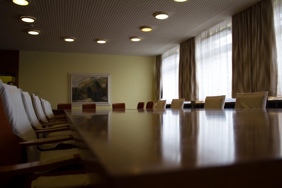 A lot of the original furnishings are still present in the museum, including this cabinet reel to reel system and the rather large conference room table in the next two photographs.