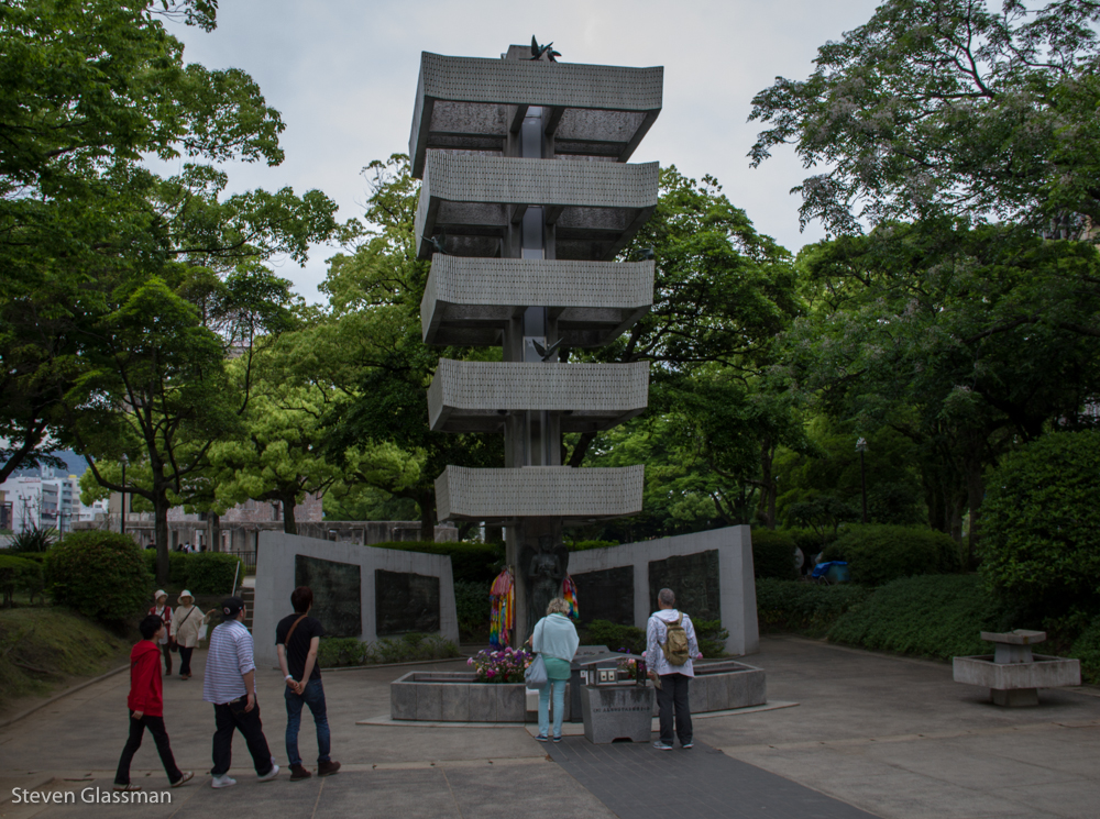 This one is well documented on the Internet- the Children’s Peace Monument. The top depicts a girl holding up a crane, a symbol of longevity and happiness. The monument was inspired by the story of a young victim who believed that she would recover from her radiation poisoning once she made 1,000 paper cranes.