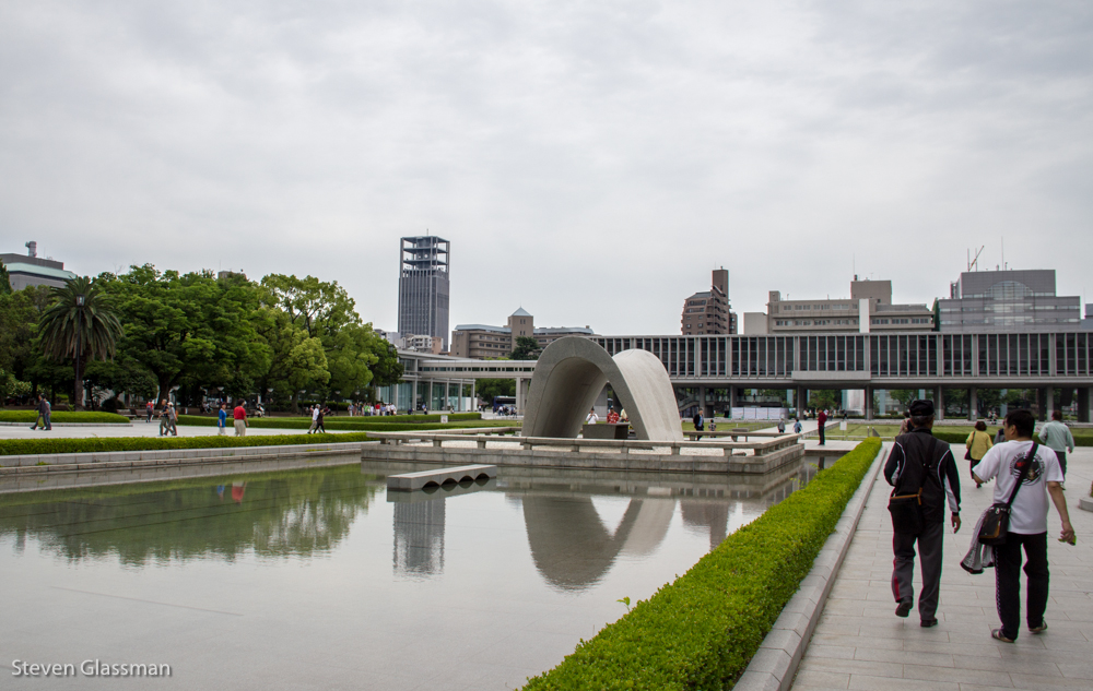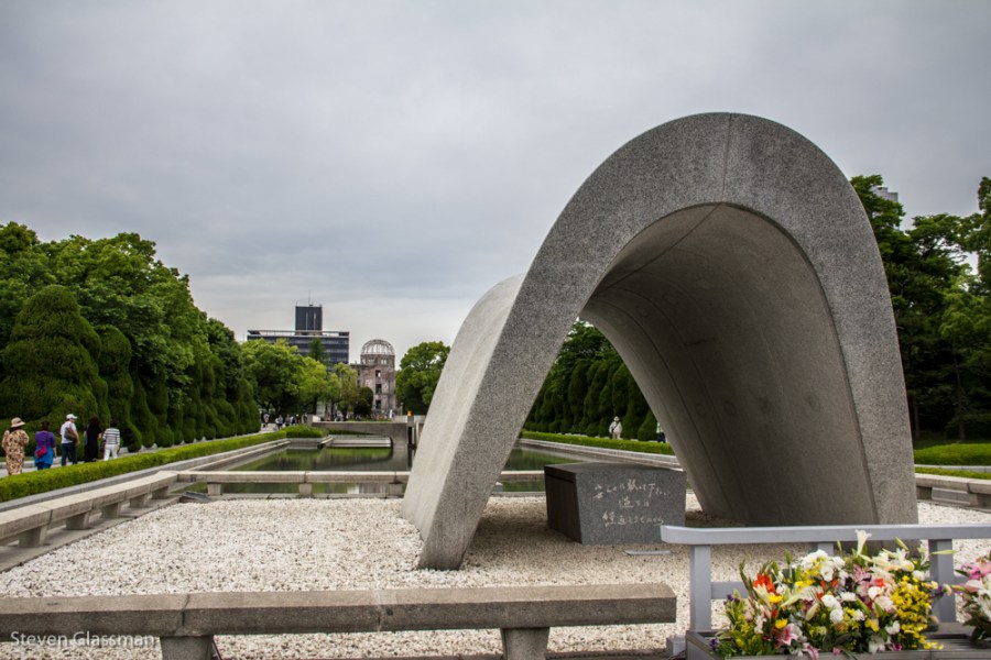 Looking back through the Cenotaph, you can see the structure of the Genbaku Dome, the lone building to remain standing after the atomic bomb blast.