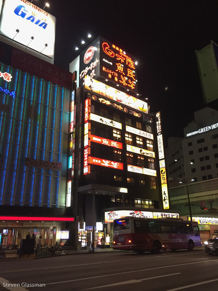 Once I dropped off my bag at the hotel, I set back out to have some dinner. I ate some junk food near the station, delighting in how much the city has been rebuilt since the bombs 70 years ago. I don’t know why I was surprised about the rebuilding- 70 years is a very long time. It’s not as if the land is irradiated.
