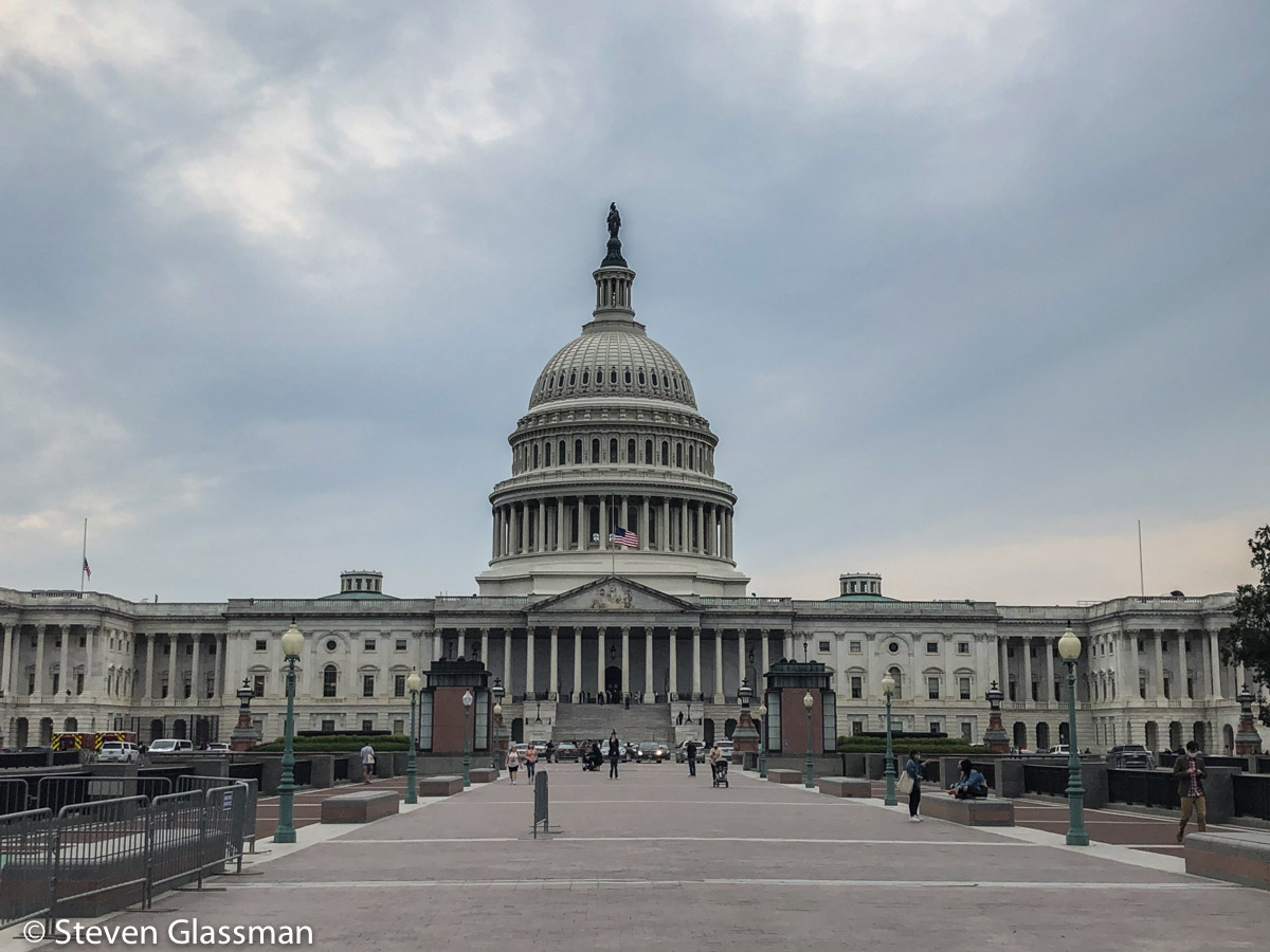 Ultimately, I chose not to go through the many-hour line, and instead I walked across the street from the front side of the Supreme Court. This is where the media was set up, and I had a clear view straight up the stairs at the front. This was a perfectly acceptable place to have a moment of silence and contemplation for all that RBG did in her lifetime.
