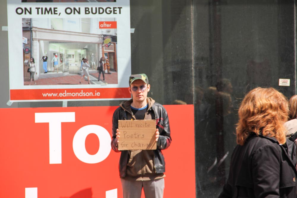 All the famous writers give way to the current crop. This guy was offering poetry for change. I’m not sure whether it was original poetry or borrowed; I didn’t ask.