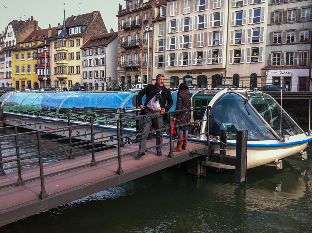 After lunch, I took a boat tour on the river, in these glass topped tour boats.  The audio portion is available in many different languages, including English.  The tour goes through two locks, which is a fascinating experience if you like transportation technology as much as I do.  The tour went past the ARTE headquarters as well as the European parliament, neither of which are pictured here because I didn’t take very many pictures from the boat. I did get a few nice shots, though, and they follow this one.