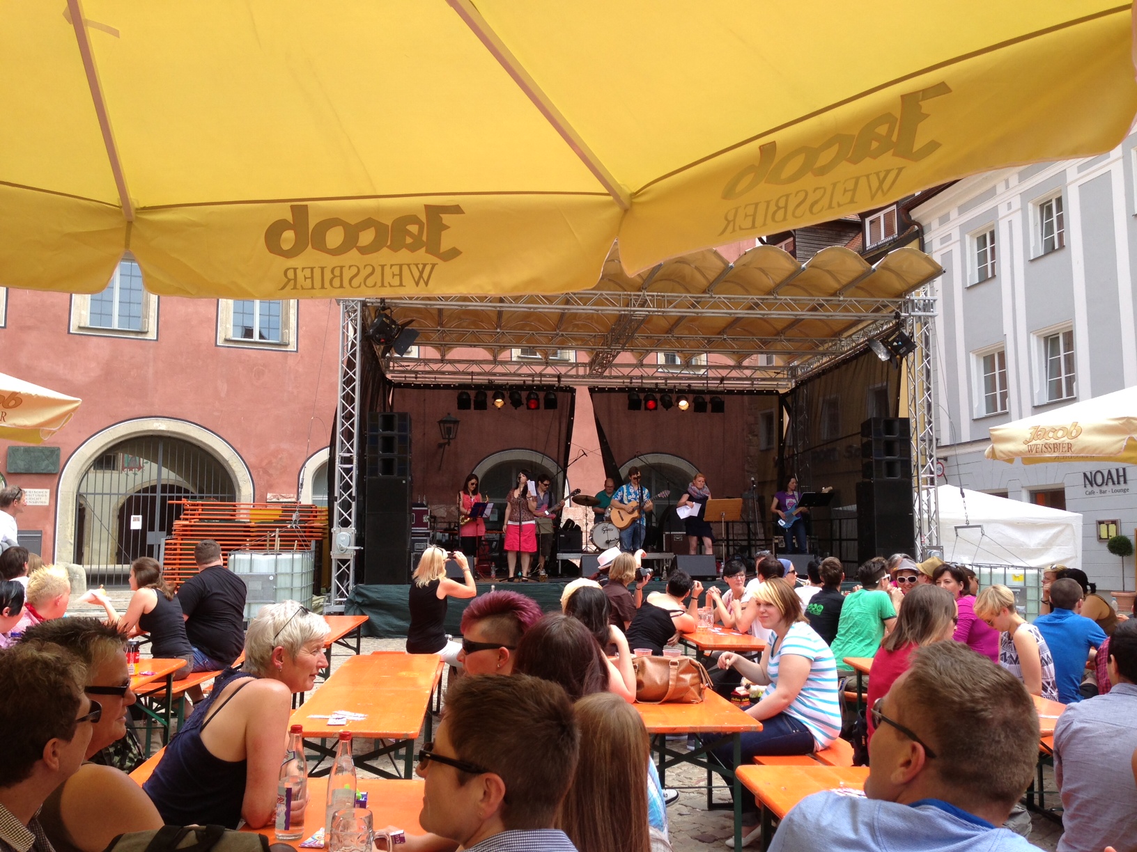 This town consistently does little things to remind me just how awesome it is. For example, we wanted to go to dinner tonight at Pam Pam, a great little Italian restaurant in the Altstadt. Dinner was fabulous, and so was the event we found when we got to Haidplatz.