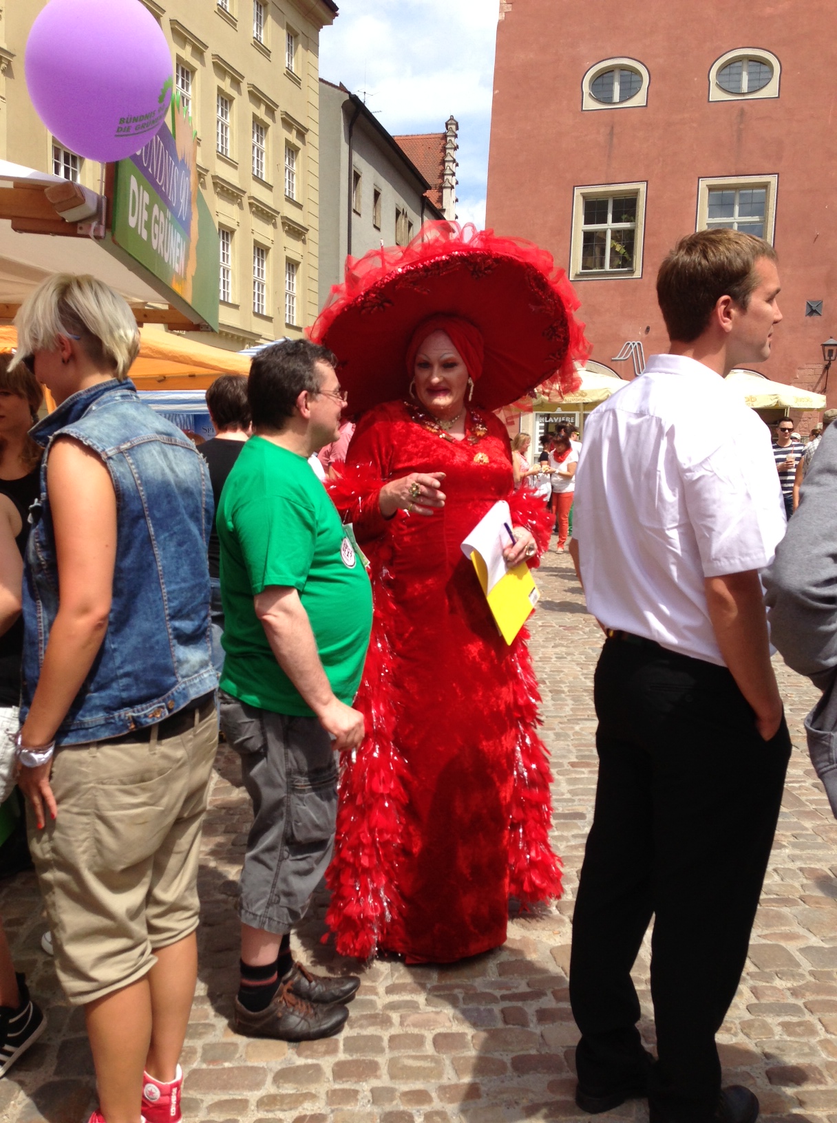 This is a huge event in Berlin and Cologne, but the day is celebrated in major cities all over the country. Normally, there’s a parade but Regensburg didn’t have one this year. I had no idea that CSD was happening at all, or I probably would have tried to get a good seat for the live music. I’ll need to make a note on my calendar for next year- I love a good parade.