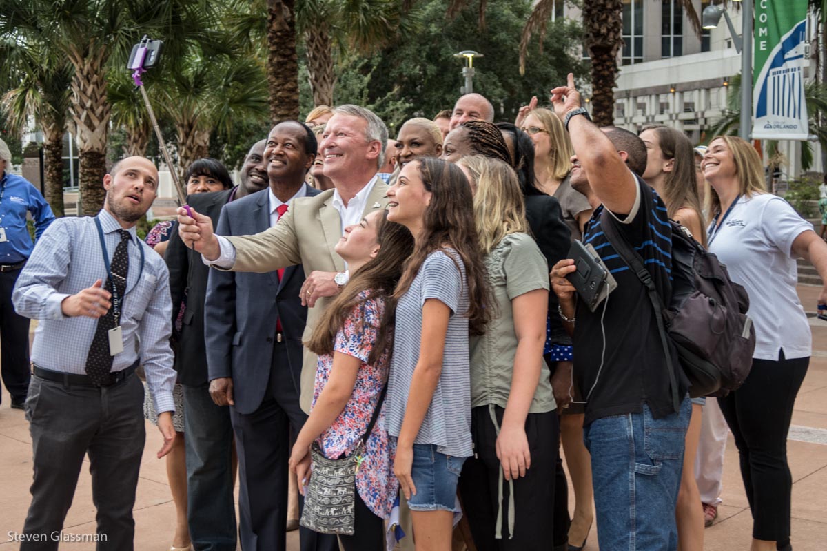 I don’t know who any of the people in this next photograph are other than the mayor, but I think this is a good example of why I like the guy- he’s approachable and friendly, and he seems to genuinely care about the people in his city. Anyone who’s game for a ridiculously large selfie is pretty OK, I think.