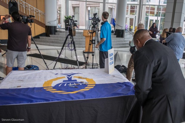 A bunch of city councilmen and other local officials posed with the flag, and that wrapped up the ceremony.