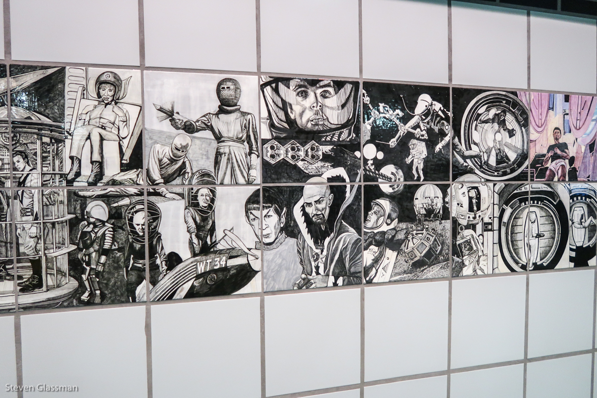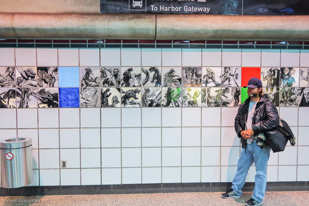 When we got back to Los Angeles, we walked through yet another Metro station with pretty nifty art. This particular one contained all kinds of movie reference art, in themed sections.