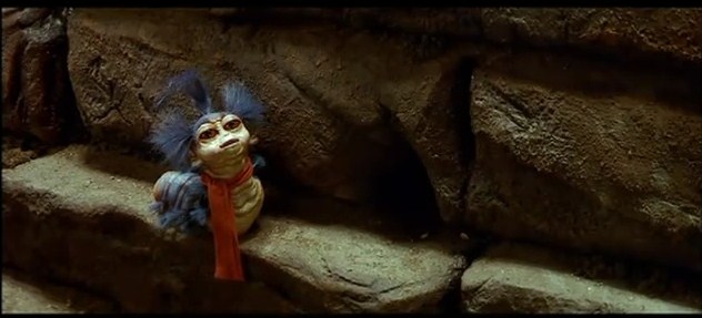 Early in the film, Sarah is following an outer track of the maze but she struggles to find an entrance to the Labyrinth. When she slumps against the wall in frustration, she meets an adorable worm who invites her in for a cup of tea, and to meet the missus.