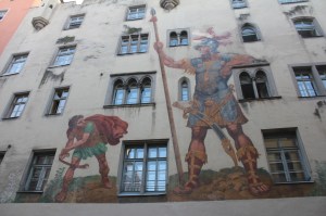 There are a lot of buildings with paintings on their sides in various places around town. This is on Goliathstrasse.