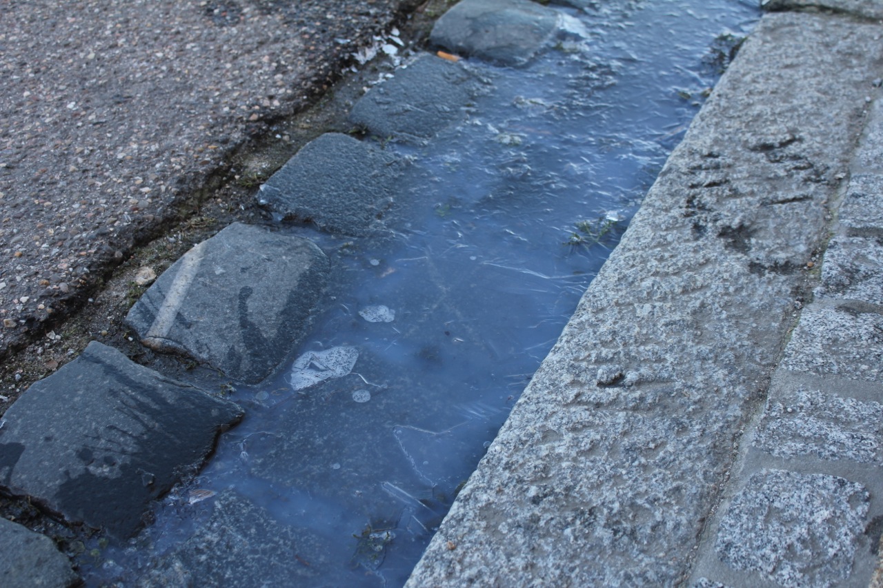 Despite the sun, it was quite cold today. To prove this, I have taken a photograph of a frozen puddle near the curb.