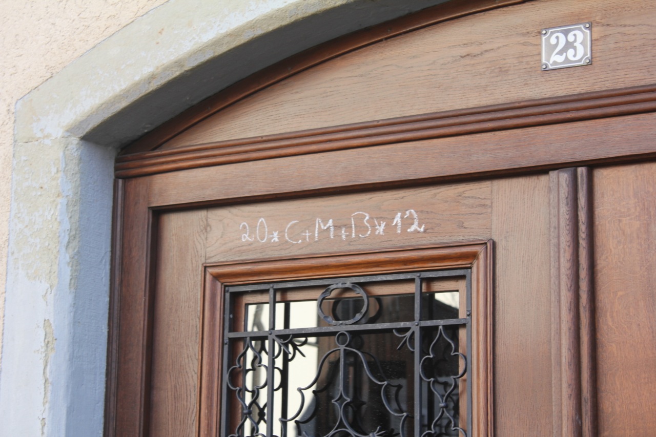 Doors all over town have this marking on them in white chalk- it’s left over from last Friday’s holiday, Epiphany. It is customary for the faithful to bless their houses at the Epiphany with blessed chalk. They write over their front door: 20 + C + M + B + 12. The digits, which appear at the beginning and end of the line, designate the new year. ‘CMB’ stands for the traditional names of the Magi (Caspar, Melchior and Balthasar) and also signifies the Latin prayer Christus Mansionem Benedicat or ‘May Christ bless this dwelling.’
