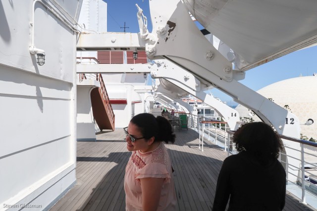 The Queen Mary is a big, big ship. We were on the deck, trying to find our way to a place to get some food.