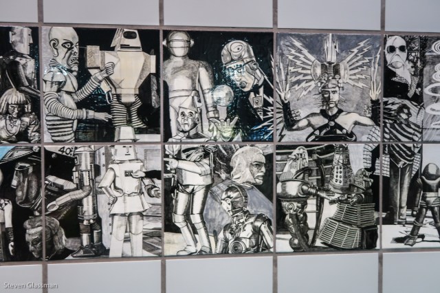 When we got back to Los Angeles, we walked through yet another Metro station with pretty nifty art. This particular one contained all kinds of movie reference art, in themed sections.