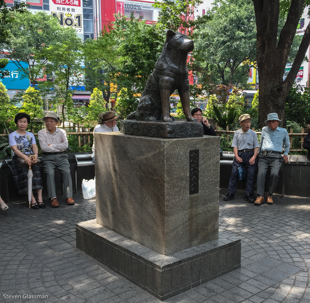 I think that’s enough talk about food.  Let’s turn our attention to one of Shibuya’s most famous residents, Hachiko.  Hachiko was an Akita dog who was adopted by a professor, Hidesaburō Ueno, in 1924.  The professor walked with Hachiko to the train station every day before going to his job at the University of Tokyo.  The dog waited at the station for his return at the end of each day.  Professor Ueno died of a cerebral hemorrhage in 1925 while giving a lecture, and Hachiko continued to walk to the station each morning.  He stayed at the station waiting for his Professor every day, until his death nine years later in 1935.  Hachiko was immortalized in bronze, and the first of several statues was unveiled in 1934, with Hachiko himself present.