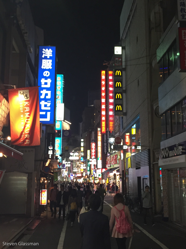 Once you’ve crossed the street from the station, this part of the city is filled with shops and restaurants.  This is where Genki Sushi is located.