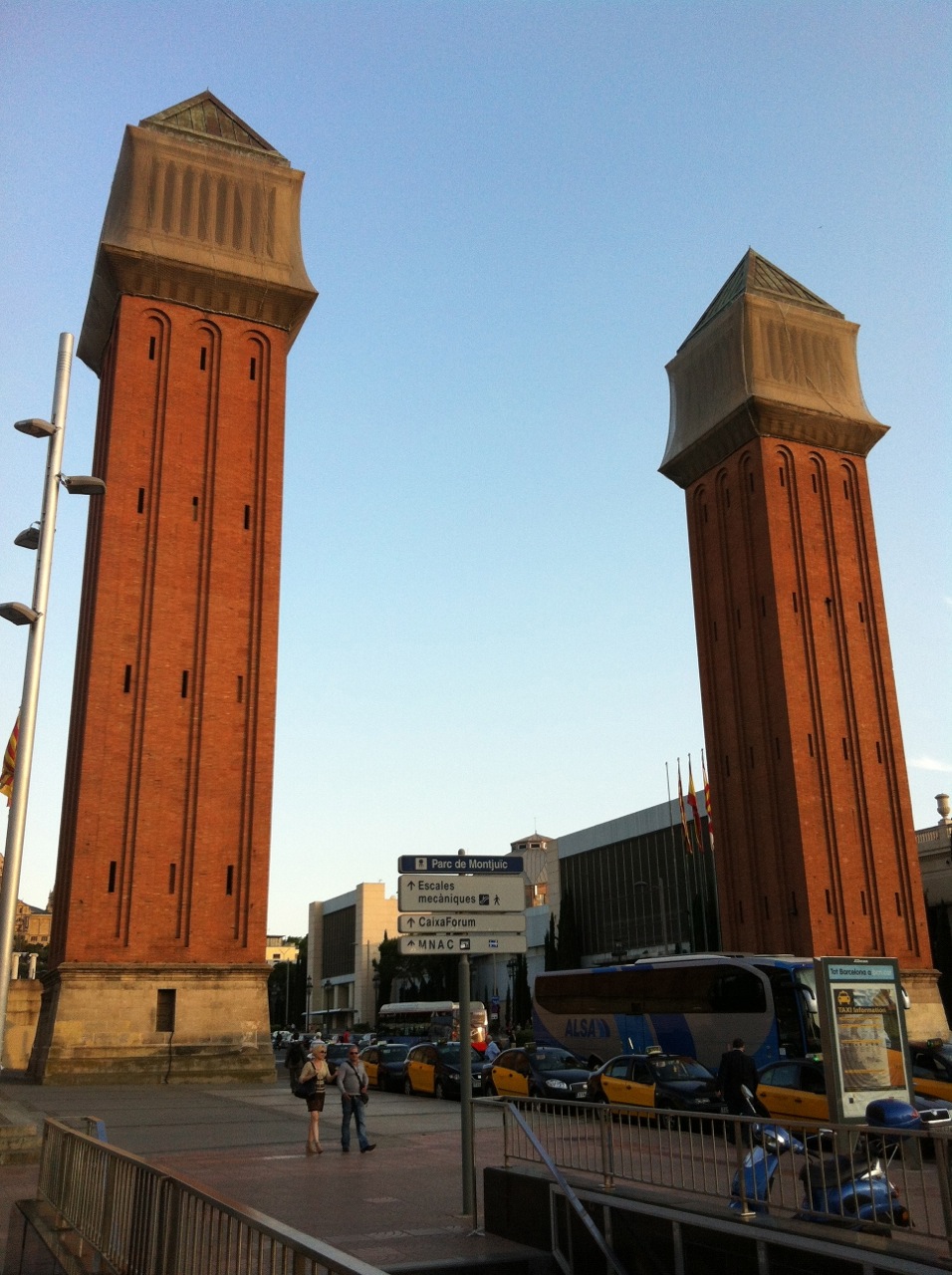 Placa Espanya – Placa Espanya holds several very impressive structures. First of all, this is where the Font Màgica (Magic Fountain) is located. Thursday through Sunday nights, after about 9pm, there’s a water show set to music. If you’ve ever seen dancing fountains at Disney or the Bellagio, then this is nothing new to you, but it’s still fun to watch. Also in the Placa Espanya are Venetian Towers, a scale replica of the originals from Venice which were a gift to Barcelona for the 1929 Universal Exposition.